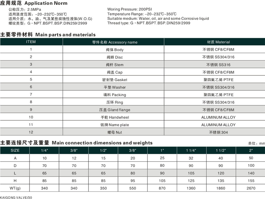 Stainless steel or copperallay is employed for main material while Body or bead welding D802 is adopted for sealing surlace, in adition,stainlessor copper alloyis also employed in the remaining trims; furthermore,incombustible grease is used for lubrication of gear parts,in which is labeled with